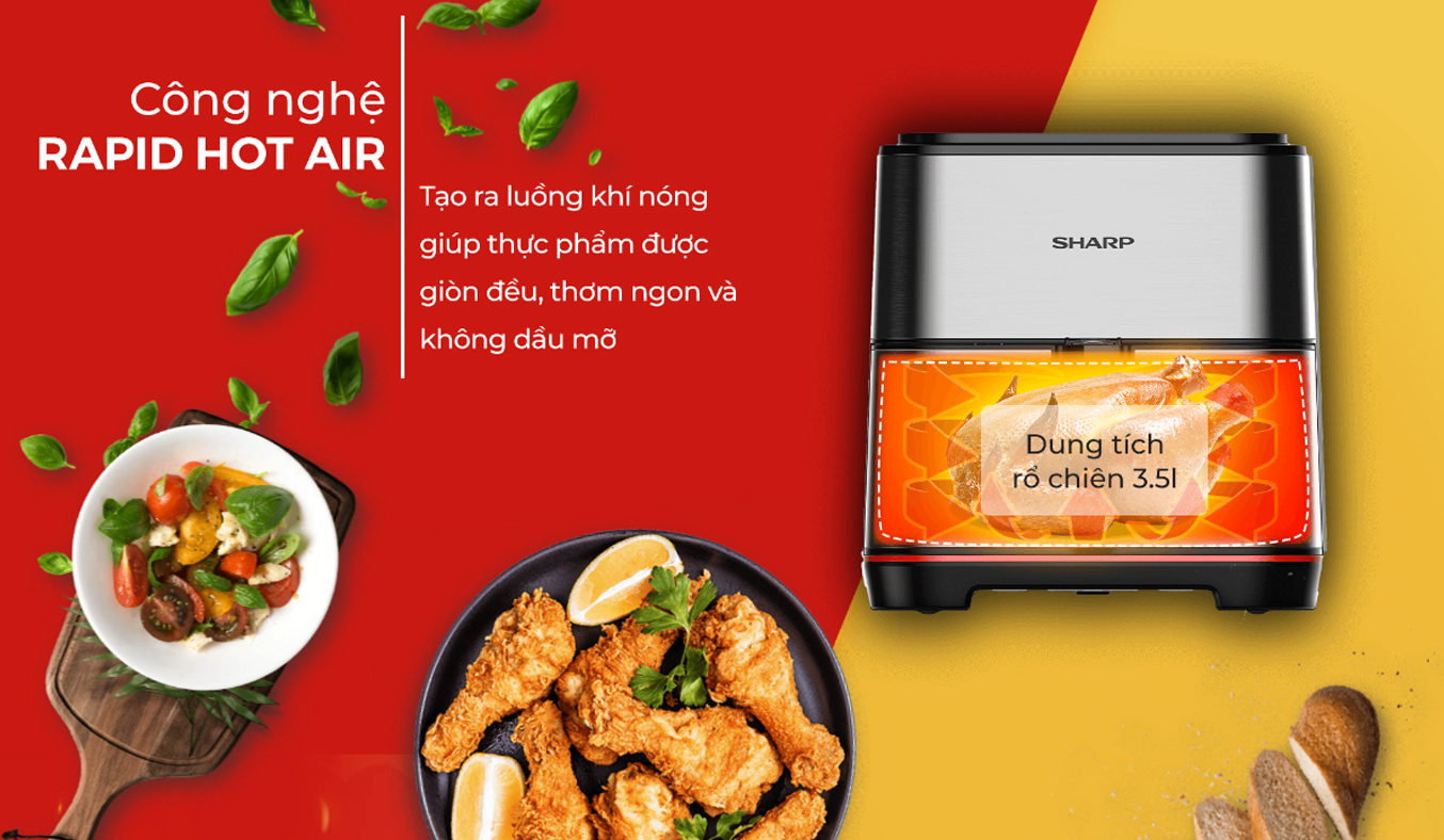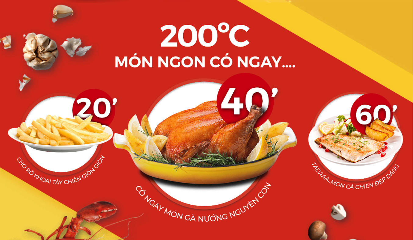 Tạo ra luồng khí nóng giúp thực phẩm được giòn đều, thơm ngon và không dầu mỡ