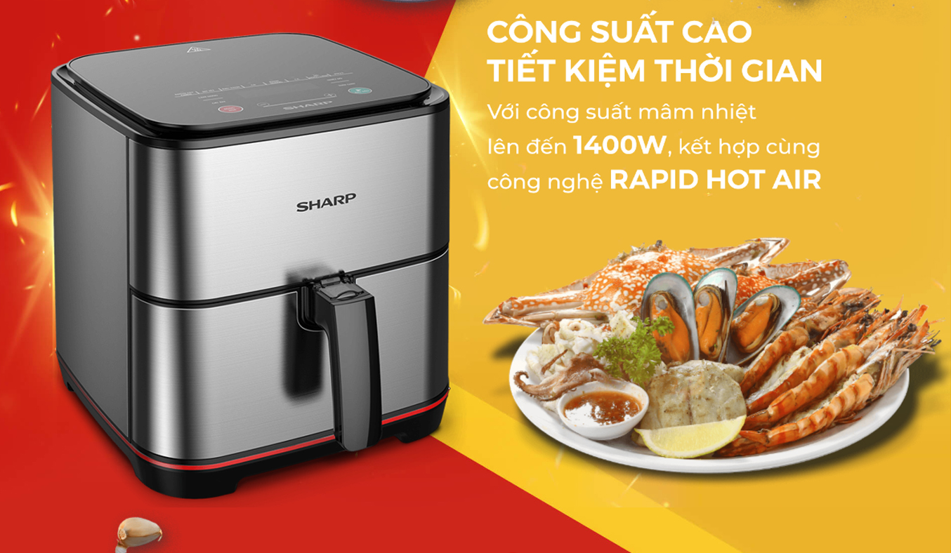 Với công suất mâm nhiệt lên đến 1400W kết hợp cùng nghệ RAPID HOT AIR giúp thức ăn mau chín, tiết kiệm thời gian